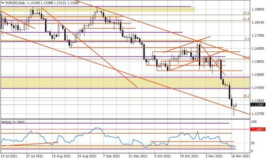 Wczorajszy handel na EURUSD zakończył się świecą doji, która zwyczajowo może zapowiadać jakieś przesilenie. Niemniej wydaje się, że na poważniejsze odreagowanie jeszcze nieco poczekamy. W przestrzeni medialnej pojawia się motyw, który może za jakiś czas nieco podciągnąć euro. Członek EBC z Niemiec (Isabell Schnabel) przyznała, że sytuacja może wymagać zmiany podejścia, co do prowadzonego przez bank centralny skupu aktywów. Można to odnieść do kończącego się na wiosnę programu PEPP i planach jego zastąpienia czymś innym. Szczegóły mieliśmy poznać na grudniowym posiedzeniu EBC (16.12). Niewykluczone, że w EBC zaczyna się ważyć na ile wschodzenie w kolejne QE nie będzie nazbyt ryzykowne. Warto obserwować, czy opinii pani Schnabel nie zaczną podzielać inni.