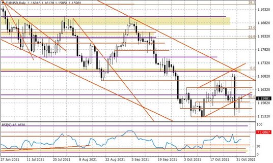 Wtorek przynosi lekkie podbicie dolara, co można tłumaczyć wyczekiwaniem na jutrzejsze informacje z FED, które mogą dać rynkom więcej dynamiki. Teoretycznie decyzja o taperingu o 15 mld USD miesięcznie jest już zdyskontowana, ale inwestorzy będą uważnie przyglądać się treści komunikatu, oraz słowom szefa FED podczas konferencji prasowej, po tym jak zaczynają pojawiać się oczekiwania, że do podwyżki stóp może dojść w II półroczu 2022 r. (po planowym wygaszeniu QE w połowie roku). Tego typu prognozy są jednak obarczone dużym ryzykiem błędu, gdyż trudno ocenić, co zrobią decydenci w obliczu rosnącego prawdopodobieństwa scenariusza stagflacji - opublikowane wczoraj wyliczenia ISM dla przemysłu za październik tylko teoretycznie wypadły nieźle (cieszy podbicie wskaźnika cen płaconych, ale martwi mocniejsze cofnięcie parametru nowych zamówień).