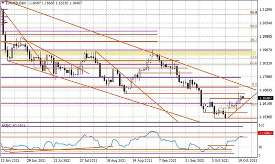 Wczoraj mieliśmy kolejne wypowiedzi członków FED - Randal Quarles z zarządu FED, oraz Loretta Mester z Cleveland byli zgodni, co do tego, że spełnione zostały kryteria do rozpoczęcia taperingu od listopada. Wątek podwyżki stóp nie został podniesiony, nawet "jastrzębia" Mester stwierdziła, że polityka jest właściwie "dopasowana", a Quarles dodał, że FED powinien zachować ostrożność w stawianiu prognoz. W opublikowanej Beżowej Księdze FED, będąca opisem sytuacji gospodarczej w poszczególnych dystryktach USA, zwrócono bardziej uwagę na spowolnienie gospodarki wywołane problemami w łańcuchach dostaw, niż wątki inflacyjne.