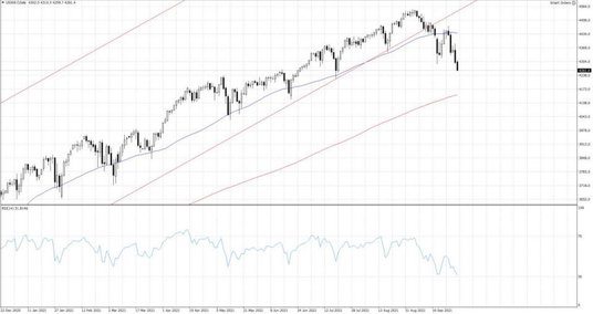 Jak na razie korekta trwa, a kapitał ucieka od bardziej ryzykownych aktywów. Niemiecki Dax testuje wrześniowe minima, a notowania kontraktu terminowego na S&P 500 spadają poniżej 4300 pkt. Inwestorom zapewne nie spodobały się kolejne komplikacje z forsowaniem pakietu infrastrukturalnego i utrzymujący się impas pomiędzy Republikanami a Demokratami. Ryzyko zmniejszenia skali stymulacji fiskalnej, w celu uzyskania dwupartyjnego poparcia, ciąży obecnie spółkom przemysłowym.
