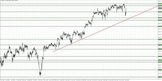 DAX kontynuuje zwyżkę po wczorajszym wyjściu nad opór na 15250-15300 pkt. Kontrakt na Dow Jones osiągnął poziom konsolidacji sprzed ostatniego spadku. Blisko rekordów jest już kontrakt na S&P500. Sektor technologiczny porusza się nieco wolniej, ale także jest to pozytywna zmiana. Ciekawie w tym kontekście wyglądają tłumaczenia ostatniej fazy spadków. Czy faktycznie był nim strach dotyczący nowego wariantu koronawirusa? Jeśli tak, to co się zmieniło przez te dwa tygodnie? Ba, odczyty liczby zakażeń nadal się podnoszą. Czy informacja o mniejszej liczbie hospitalizacji i zgonów jest tu czynnikiem ograniczającym strach. Być może, że rynek jako taki bardziej się powinien obawiać nowych obostrzeń, a te mimo wszystko mogą się pojawić. Ta sytuacja pokazuje, że nie ma sensu tłumaczyć każdej małej zmiany wycen czynnikami "dużymi". Większa zmienność i rynek szarpany to będzie nowa normalność w najbliższym czasie. Rynek akcji wchodzi w fazę wyciszenia tempa zwyżki, choć sam trend może być jeszcze kontynuowany, na co wskazywać będą pojawiające się co jakiś czas nowe szczyty. Niemniej wyceny, szczególnie w USA są na tyle wysokie, że trudno jest zakładać duży potencjał dla dalszej zwyżki. Szczególnie, że czynniki monetarne będą mniej sprzyjające. To nie musi automatycznie oznaczać załamania, ale nerwowość na rynku i skoki nastrojów zapewne będą dość częste.