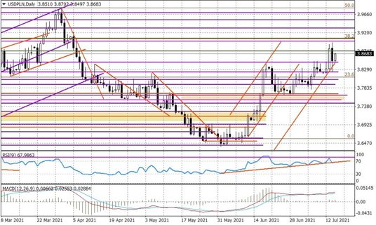 Czwartkowy ranek przynosi jednak powrót do osłabienia złotego. EURPLN podchodzi pod poziom 4,58, a USDPLN wraca do 3,87 (choć w tym wypadku do wczorajszego szczytu ma jeszcze 2,5 grosza). Co dalej? W kraju mamy ostateczne dane nt. czerwcowej inflacji CPI, które wiele nie wniosą. Tym samym istotny pozostanie nadal globalny sentyment, oraz postrzeganie naszego regionu, w tym Polski przez zagranicznych inwestorów w kontekście ryzyka pandemicznego, ale i też krajowej polityki (także monetarnej). Złoty ma perspektywę kontynuacji spadków.