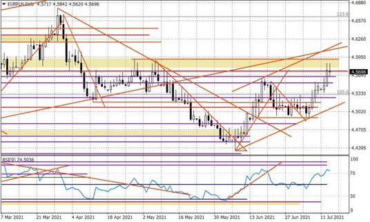 Złoty jest słaby nie tylko za sprawą ostatnio silnego dolara na globalnych rynkach, choć jest to jeden z ważniejszych czynników. Tymczasem USD został wczoraj wsparty przez rekordowy odczyt inflacji CPI w czerwcu, co może przybliżać moment normalizacji polityki monetarnej w USA. Ten fakt nie będzie też korzystny dla złotego, biorąc pod uwagę, że RPP pozostaje w "gołębim" nastawieniu, co staje się już fenomenem także w naszym regionie.