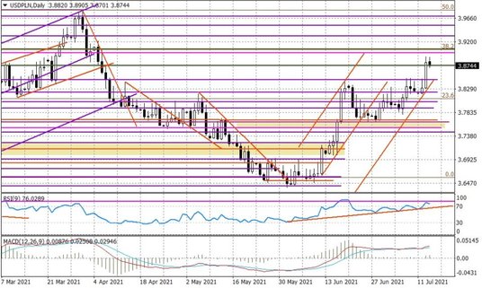Dzisiaj w krajowym kalendarzu mamy dane nt. bilansu płatniczego w USA za maj, choć będą one mieć niewielkie znaczenie. Nadal kluczowe pozostanie zachowanie EURUSD, który po wybiciu wczoraj ostatniego dołka przy 1,1780 próbuje dzisiaj nieco odbijać, oraz globalny sentyment na który wpływ mają też doniesienia dotyczące pandemii Delta-Covid.