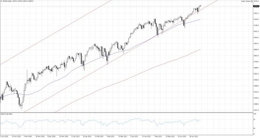 Mediana prognoz zakłada, że dynamika inflacji wyhamuje do 4.9% r/r z 5.0% r/r odnotowanych w maju. Teoretycznie zgodny z prognozami lub niższy odczyt będzie wspierać sentyment rynkowy, podczas gdy dalszy wzrost inflacji powinien ciążyć ryzykownym aktywom. Wyższa presja cenowa skłania bowiem bankierów centralnych do rozpoczęcia procesu normalizacji polityki monetarnej. W poprzednich dwóch miesiącach kiedy dane o inflacji zaskoczyły po wyższej stronie rynek jednak wcale się ich nie przestraszył. Większość majowego wzrostu cen związana była z elementami przejściowymi. Najwyższe poziomy cen odnotowano w odmrażanych branżach czy obszarach związanych ze wzrostem mobilności. Jako przykład można podać usługi gastronomiczne czy ceny samochodów używanych. Ważny będzie zatem nie sam odczyt, a również struktura wzrostu. Do tej okazję odnieść się będzie miał również Jerome Powell podczas odbywającego się jutro półrocznego przesłuchania w Kongresie. Polityka monetarna pozostaje zatem na pierwszym planie, niemniej jednak tuż za nią znajdują się oczekiwania związane ze zbliżającymi się publikacjami wyników spółek za II kw. Dziś swoje rezultaty przedstawią Goldman Sachs, czy JPMorgan. Tradycyjnie wynik działalności sektora bankowego będzie barometrem tego czego możemy się spodziewać po wszystkich spółkach. Liczba przypadków zarażeń na świecie dalej sukcesywnie rośnie, niemniej jednak w sytuacji gdy poziom zaszczepienia ludności zwiększa się rynek z wariantem delta nie wiąże jeszcze dużych obaw.