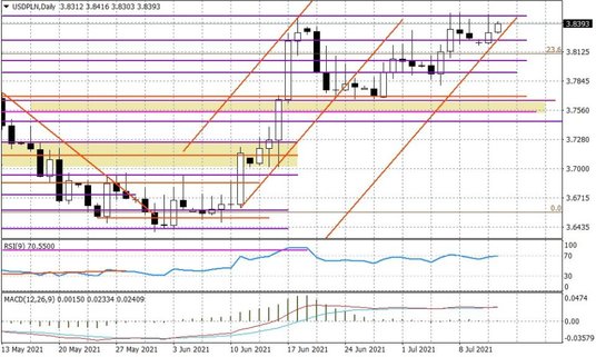 Technicznie EURPLN podjął wczoraj próbę złamania oporu przy 4,56. Nie była ona udana, ale podobna szansa może mieć miejsce dzisiaj. Naruszenie w/w poziomu da przestrzeń do ruchu w stronę 4,58. W przypadku USDPLN wczoraj mieliśmy atak na opór przy 3,85. Rynek jednak lekko się cofnął, dzisiaj niewykluczona jest kolejna próba. Ważnym aspektem będzie tu zachowanie się EURUSD, który chwilowo utknął między ważnymi poziomami 1,1846-1,1880, ale z tendencją do wyjścia dołem.