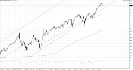 Rynek już nie raz i nie dwa mierzył się z silniejszym wzrostem liczby nowych przypadków Covid-19. O ile w krótkim terminie powoduje to zamieszanie, o tyle w dłuższym ważniejsze pozostają nadzieje na kontynuacje ożywienia i odblokowywanie restrykcji w wyniku prowadzonej kampanii szczepień. Tak więc część uczestników rynku może próbować wykorzystywać cofnięcie indeksów do zwiększenia zaangażowania. Sezon wyników spółek za I kw. trwa i będzie on wpływał na apetyt na ryzyko. Na horyzoncie pozostają również wstępne wskaźniki PMI odzwierciedlające poziom koniunktury gospodarczej w kwietniu. Potencjalnie przyspieszenie tempa poprawy koniunktury gospodarczej powinno łagodzić obawy związane ze wzrostem ilości nowych przypadków Covid-19 na świecie. Na początku środowej sesji notowania kontraktów terminowych na amerykańskie indeksy odrabiają część wczorajszych strat, a niemiecki Dax próbuje wrócić powyżej 15200 pkt.