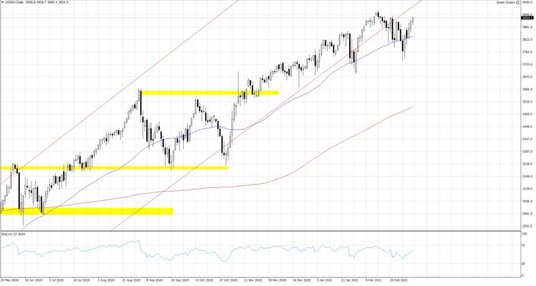 W efekcie przemysłowy Dow Jones wyszedł wczoraj na nowy szczyt, a S&P500 ruszył w kierunku 4000 pkt. Brak większych komplikacji jeśli chodzi o front walki z pandemią i szczególnie sprawny w USA proces szczepień wpisują się w scenariusz pozostawania indeksów w trendzie wzrostowym. Istotne w tym względzie będą nowe środki, które jeszcze w tym miesiącu bezpośrednio popłyną do Amerykanów. Ci deklarują bowiem, że część z nich przeznaczą na zakup akcji. Patrząc na wyniki i perspektywy spółek przemysłowych te cały czas radzą sobie dobrze. Nadzieje na odbudowę gospodarczą i wychodzenie z pandemii powinny natomiast wspierać tradycyjne branże. Nie tylko sektor finansowy i przemysł – ten ostatni dodatkowo stymulowany będzie przez wzrost wydatków infrastrukturalnych – ale i biznesy, które najmocniej ucierpiały podczas pandemii. Branża lotnicza, czy hotelarstwo powinny radzić sobie coraz lepiej.