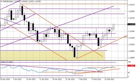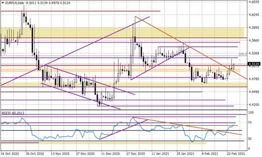 Co ciekawe dalsze wzrosty rentowności amerykańskich obligacji zostały zignorowane - dzisiaj dla 10-latek sięgnęliśmy poziomu 1,43 proc. Niemniej na zmianę nastrojów wpływ mógł mieć przekaz z FED - wczoraj drugi dzień z rzędu zeznawał w Kongresie Jerome Powell, ale i też mieliśmy planowane wystąpienie wiceprezesa FED, Richarda Claridy, którego opinie są cenione przez rynki. Jeszcze we wtorek szef FED próbował dać do zrozumienia, że wzrosty rentowności obligacji nie są niczym niepokojącym w kontekście spodziewanego ożywienia gospodarczego. Wczoraj w podobnym tonie wypowiedział się też Clarida, dodając przy tym, że działania banku centralnego nakierowane są na wsparcie odbicia gospodarki (nie ma więc na razie mowy o ryzyku jej przegrzania), a zawsze w gotowości są narzędzia mające powstrzymać nadmierny wzrost inflacji. Jego zdaniem do końca tego roku nie dojdzie do żadnych zmian w polityce monetarnej. Najciekawsza była jednak odpowiedź samego Powella na jedno z pytań - otóż zdaniem szefa FED realizacja celu inflacyjnego może zabrać nawet trzy lata ! To wyraźnie redukuje wszelkie obawy związane z tzw. taperingiem, pozwalając być może rozegrać rynkom kolejną falę wzrostową na ryzykownych aktywach.