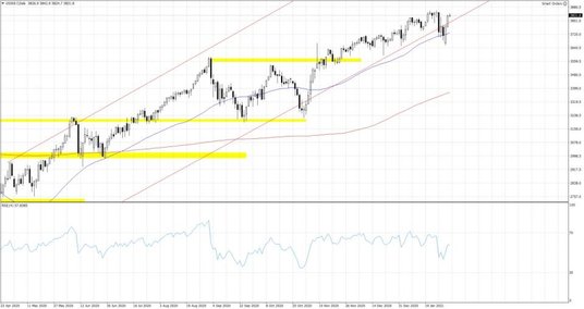 Po zakończeniu wczorajszej sesji na Wall Street swoje wyniki za IV kw. opublikował Alphabet oraz Amazon i w obydwu przypadkach wypadły one lepiej od prognoz. Dodatkowo w kontekście pakietu fiskalnego na rynek napływają informacje o dużej determinacji Joe Bidena w forsowaniu pakietu fiskalnego w kwocie 1.9 bln USD i nad tym trwają negocjacje z Republikanami. Obawy o proces szczepień czy ryzyko związane z czysto spekulacyjnymi transakcjami części inwestorów detalicznych z USA, spadają obecnie na drugi plan. W kalendarium makroekonomicznym znajdują się dziś usługowe wskaźniki dla krajów strefy euro, ale dla nikogo niespodzianką nie jest zapaść tego sektora przez utrzymujące się na początku 2021 roku restrykcje w Europie. Ciekawiej zapowiadają się analogiczne dane ISM z USA publikowane popołudniu oraz raport ADP będący zapowiedzią publikowanych w piątek styczniowych danych z amerykańskiego rynku pracy.