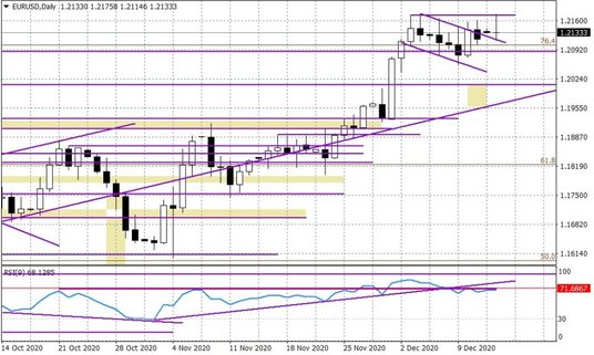 Zbiegło się to z odbiciem dolara na wielu parach, czego pretekstem mogły być informacje o podwyższeniu stanu zagrożenia COVID w Londynie, oraz słowach burmistrza Nowego Jorku, że powinno rozważyć się całkowity lockdown. Po rannych informacjach, że Niemcy wprowadzają od najbliższej środy do 10 stycznia tzw. twardy lockdown, rynki stały się znów bardziej wrażliwe na tego typu doniesienia. Później podobne doniesienia napłynęły z Holandii (tamtejszy premier Rutte ma niedługo podjąć decyzję). Teoretycznie rozpoczął się proces szczepień (na razie tylko w Wielkiej Brytanii i USA), ale nie zmienia to faktu, że próba poluzowania obostrzeń w okresie przedświątecznym mogła być pewnym błędem.