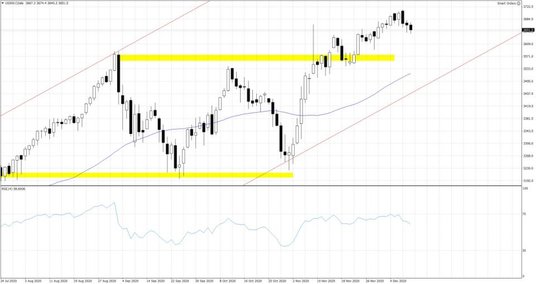 Wczorajsza sesja na Wall Street nie przyniosła większych ruchów, a niemiecki Dax cały czas ma problem z wyłamaniem się z trwającej od kilkunastu sesji konsolidacji. Na początku piątkowych godzin handlu testuje nawet dolne ograniczenie na 13150 pkt. Notowania kontraktu terminowego na S&P500 znajdują się w okolicach wczorajszych minimów na 3650 pkt. Trudno jednak znaleźć bezpośrednie argumenty przemawiające za pogorszeniem nastrojów, przez co bieżące zachowanie amerykańskich indeksów raczej należy rozpatrywać jako korektę w trendzie wzrostowym, niż początek większego cofnięcia. Ponownie wskrzeszenie oczekiwań na uchwalenie pakietu fiskalnego w USA w połączniu z coraz bliższą perspektywą szczepień w USA powinno ponownie napędzać popyt na ryzyko. Widać to szczególnie po zachowaniu notowań ropy, która przez oczekiwania na wzrost popytu znalazła się na nowych popandemicznych szczytach i w przypadku odmiany WTI dobiła do 47 USD za baryłkę. Jedynym elementem, który może niepokoić obecnie inwestorów jest widmo zakończenia negocjacji pomiędzy Londynem a Brukselą bez porozumienia w wyniku czego Wielka Brytania może wyjść z okresu przejściowego bez umowy handlowej, co wiązałoby się z wymiernymi stratami dla obydwu stron. Brytyjski premier Boris Johnson oznajmił, że należy się przygotowywać na taki scenariusz, choć wciąż może być to element gry negocjacyjnej. Czas jednak pozostaje nieubłagalny, a strony okopują się tylko w swoich obozach. W Stanach Zjednoczonych ponownie kontynuowane są rozmowy nad pomocą fiskalną, która w kontekście ostatnich pogarszających się danych z amerykańskiego rynku pracy staje się coraz bardziej potrzebna.