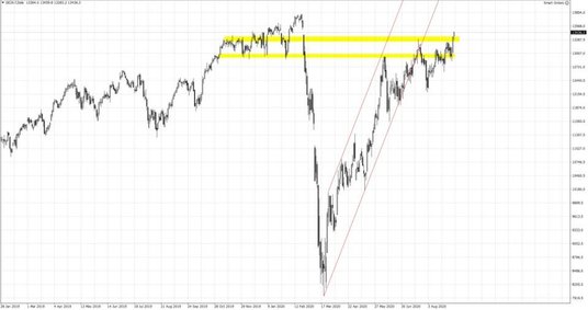 Na początku sesji na Starym Kontynencie niemiecki Dax wybija się na nowy popandemiczny szczyt powyżej 13400 pkt., w czym pomagają informacje o wprowadzeniu nowego planu ratunkowego we Francji sięgającego 100 mld euro. Dodatkowo kolejną sesję z rzędu tracą na wartości notowania euro. Główna para walutowa schodzi dziś w kierunku 1.18. Patrząc w szerszym kontekście rajd ryzyka trwa i jak na razie nie widać czynników, które mogłyby stanąć mu na drodze. Inwestorzy liczą już na szczepionkę, która ma być opracowana przed końcem roku i zmieni układ sił w walce z pandemią. Nie zwracają oni już tak dużej uwagi na wzrost liczby nowych przypadków Covid-19. Skoro w sierpniu, kiedy w USA dzienna liczba potwierdzonych przypadków dochodziła do 50 tys. i nie spowodowało to pogorszenia aktywności, to nic nie powinno zaszkodzić już odbiciu aktywności. Tym bardziej, że niedługo na horyzoncie może pojawić się szczepionka. Za wzrostem akcji przemawia silna stymulacja gospodarcza, nie tylko monetarna, ale jak widać po dzisiejszym przykładzie Francji, również fiskalna.