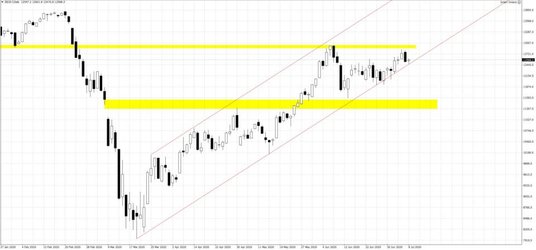 Po wczorajszej ok. 1% korekcie na Wall Street notowania kontraktów terminowych na amerykańskie indeksy pozostają stabilne, co w przypadku S&P 500 oznacza rejon 3145 pkt. O ile optymizm związany z nadziejami na dynamiczne odbicie przygasa, to jednak dalsze rozprzestrzenianie się koronawirusa nie budzi jak na razie większej awersji do ryzyka. Nie oznacza to jednak, że taki scenariusz nie grozi. Przywracanie obostrzeń będzie bowiem dusić odradzającą się aktywność, co z kolei może zaciążyć cenom akcji. W najbliższych dniach w centrum uwagi rynków znajdować się będzie zbliżający się sezon wyników za II kw., który ma spory potencjał aby jeszcze namieszać na rynku. Jeśli chodzi o kalendarium makroekonomiczne w najbliższych dniach to pozostaje praktycznie puste, zatem na pierwszy plan mogą wysuwać się statystyki dotyczące rozwoju pandemii na świecie. Wraz z otwarciem rynku kasowego w Europie straty odrabiają parkiety Starego Kontynentu. Niemiecki Dax próbuje bowiem wrócić w okolice 12600 pkt.