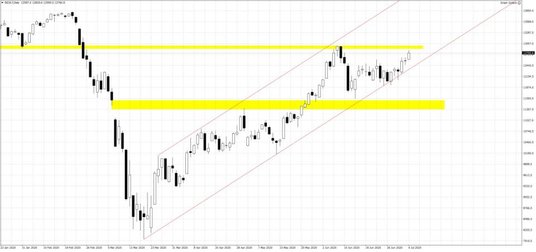 Wzrosty podczas azjatyckich godzin handlu przekraczały 1%, a sesja na Starym Kontynencie rozpoczyna się od 2% wzrostów. W podobnej skali zyskują notowania kontraktów terminowych na amerykańskie indeksy, co w przypadku S&P 500 oznacza wyjście na najwyższe poziomu od początku czerwca. Niemiecki Dax natomiast dociera do 12800 pkt. i do ubiegłomiesięcznych maksimów brakuje mu już nieco ponad 100 pkt. Za dzisiejszymi wzrostami nie stoi żadne konkretne wydarzenie, a widoczny optymizm inwestorów jest jeszcze wynikiem lepszych od oczekiwań ubiegłotygodniowych danych, które wpisywały się w scenariusz V-kształtnego odbicia. Ma to miejsce mimo wcale nie malejącej liczby nowych przypadków koronawirusa na świecie. Pandemia rozprzestrzenia się praktycznie wszędzie, a Australia ponownie zamyka granicę w najbardziej zaludnionych regionach. Nie można zatem mówić o jakimś złagodzeniu obaw dotyczących Covid-19. Jak na razie wygrywają zatem poprawiające się wskaźniki gospodarcze, które na drugi plan spychają obawy związane z pandemią. Istnieje jednak ryzyko, że częściowo przywracane obostrzenia ponownie odcisną negatywne piętno na koniunkturze na świecie, co przełoży się na pogorszenie wskaźników i wzrost awersji do ryzyka. W dalszym ciągu nie można zatem lekceważyć ryzyk związanych z rozprzestrzenianiem się pandemii. Rynki finansowe próbują się nauczyć funkcjonować w nowej rzeczywistości. Obecna sytuacja przypomina nieco tę z 2019 roku, kiedy to mimo prowadzonej wojny handlowej i spowolnienia aktywności, ceny akcji zdołałby zyskać przeszło 20%. W 2020 świat mierzy się jednak z dużo większym zagrożeniem.