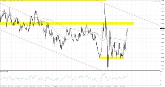 Dobre nastroje utrzymują się mimo trwających w USA protestów i groźby Trumpa wyprowadzenia wojska na ulice w przypadku, gdy władze lokalne nie zapanują nad nimi. Wczorajsza sesja na Wall Street zakończyła się 0.5% wzrostami, a indeksy pozostają na popandemicznych szczytach. Niemiecki Dax mimo siły euro zdołał wczoraj przy braku sesji na rynku kasowym wyjść powyżej 11800 pkt. i znajduje się obecnie 100 punktów wyżej. Relatywnie lepsze zachowanie głównego indeksu niemieckiej giełdy jest wynikiem rozmów prowadzonych z udziałem niemieckiej kanclerz Angeli Merkel dotyczących drugiego pakietu fiskalnego, który ma pomóc największej gospodarki strefy euro. Jego losy będą ważyć się w dniu dzisiejszym. Byki cały czas pozostają w natarciu i trudno z nimi walczyć. Przepływ kapitału w kierunku bardziej ryzykownych aktywów widać również na rynku walutowym, gdzie dolar pozostaje w zdecydowanej defensywie, a kurs EURUSD wychodzi powyżej 1.11 i może zmierzać w kierunku strefy oporu zlokalizowanej w okolicy 1.12. Sam dolar jest najsłabszy od 3 miesięcy, ale i doniesienia z Niemiec mogą umacniać wspólną walutę.