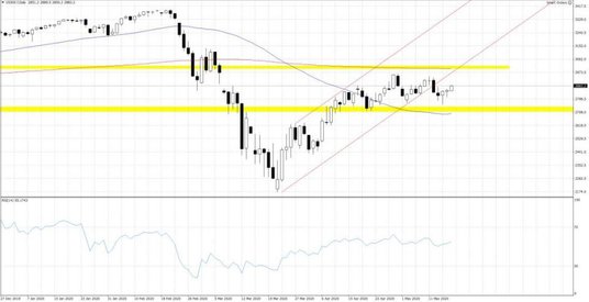 Notowania kontraktów terminowych na amerykańskie indeksy zyskują przeszło 1%, a niemiecki Dax na początku godzin europejskiego handlu drożeje o ponad 2% wychodząc powyżej 10700 pkt. Do luzowania obostrzeń przystępuje Nowy Jork, a burmistrz Kalifornii poinformował, że stan jest już w 75% otwarty. Podobne wieści płynąc z europejskich epicentrów pandemii. Otwiera się również włoska gospodarka, a od 3 czerwca kraj otworzy granice, zniesiona ma być tez kwarantanna. Widać, że kraj przygotowuje się na otwarcie turystyki. Obecnie pozwala na to opadająca krzywa nowych zakażeń, choć jeśli statystyki ponownie się pogorszą obostrzenia mogą być przywrócone. Rynki finansowe obecnie cieszą się jednak z pozytywnego obrotu spraw i taki stan rzeczy może dalej wspierać popyt na ryzyko. Obecnie główne indeksy podążają w kierunku ostatnim maksimom, co w przypadku S&P 500 oznaczałoby próbę podejścia pod 3000 pkt.