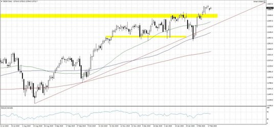 Wspiera to sentyment rynkowy i pomaga indeksom giełdowym wrócić na szczyty. Dodatkowo chińskie władze cały czas pozostają aktywne starając się zminimalizować negatywny wpływ epidemii na gospodarkę i jak najbardziej wesprzeć przedsiębiorstwa stopniowo wznawiające produkcję. Zasilają one bowiem w płynność firmy znajdujące się w kłopotach i zamierzają ratować linie lotnicze, które w związku z zawieszeniem połączeń znalazły się na skraju upadłości. Środowa sesja na Starym Kontynencie rozpoczyna się od wzrostów sięgających 0.5%, a niemiecki Dax wraca powyżej 13700 pkt. Notowania kontraktów terminowych na amerykańskie indeksy wracają w kierunku szczytów wszech czasów, zatem wczorajsze pogorszenie nastrojów po ostrzeżeniach niższej sprzedaży ze strony Apple nie przestraszało inwestorów na Wall Street. Rynek wyraźnie liczy na to, że skutki spowolnienia gospodarczego na świecie w wyniku epidemii skutecznie uda się załagodzić ekspansywną polityką monetarną oraz fiskalną.