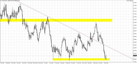 W wyniku tego dolar australijski zyskał na wartości, a notowania AUDUSD odbijają od strefy wsparcia poniżej 0.67, gdzie znajdują się 4-miesięczne minima. Sam komunikat banku też nie był zbytnio gołębi. RBA sygnalizuje, że najbliższe miesiące powinny przynieść poprawę warunków gospodarczych, co zapewne związane jest z nadziejami na ożywienie wymiany międzynarodowej po tym jak udało się zawrzeć częściowe porozumienie handlowe pomiędzy USA a Chinami. Monitorować należy natomiast ryzyka związane z konsekwencjami wirusa. Zdaniem RBA jest jeszcze za wcześnie aby oszacować długoterminowe konsekwencje koronawirusa. Liczba zarażonych przekroczyła już 20 tys., a zgonów 425. Po posiedzeniu rynkowa wycena cięcia stóp podczas marcowego posiedzenia obniżyła się z 60 do 30%. AUDa wspiera dodatkowo obserwowana od początku tygodnia poprawa nastrojów po ubiegłotygodniowej wyprzedaży. Elementem sprzyjającym nastrojom rynkowym są kolejne działania stymulacyjne podejmowane przez Ludowy Bank Chin i zasilanie gospodarki w płynność.