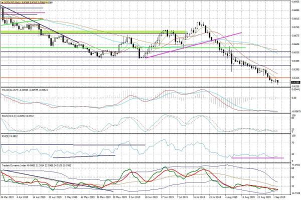 Reasumując, nawet osłabienie funta wobec dolara, które biorąc pod uwagę wczorajsze wydarzenia, było uzasadnione, też zaczyna być w krótkim terminie mieć ograniczone pole. Kurs GBP/USD spadł dzisiaj w okolice nie notowane od ponad 3 lat (poniżej 1,1986). Proces negowania odwróconej formacji RGR widocznej jeszcze tydzień temu, przybrał dość gwałtowny charakter (nie jest to dużym zaskoczeniem), a dzienne wskaźniki (zwłaszcza MACD) potwierdziły ten ruch. Warto jednak obserwować uważnie sytuację – powrót ponad wybity dołek z sierpnia (1,2013) może doprowadzić do tzw. short squeeze (gwałtownego pokrywania krótkich pozycji).