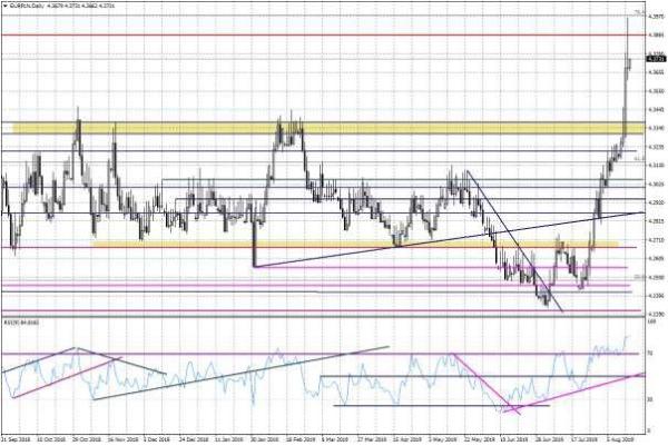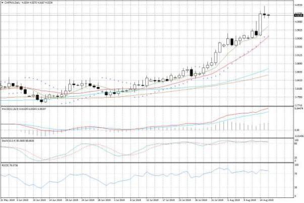 Szczyt słabości złotego przypadł na dzień o niskiej płynności (święto i brak aktywności inwestorów krajowych), oraz okres sporej nerwowości na światowych rynkach akcji. Amerykańskie indeksy odnotowały sporą przecenę w środę wieczorem, po tym jak zaczęto coraz bardziej obawiać się ryzyka wystąpienia recesji w amerykańskiej gospodarce (rentowności 10-letnich obligacji po raz pierwszy od 2007 r. spadły poniżej poziomu rentowności papierów 2-letnich).