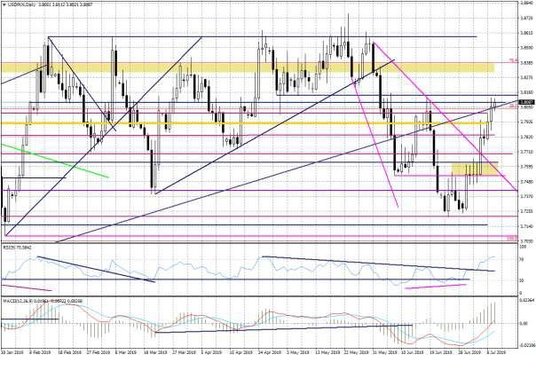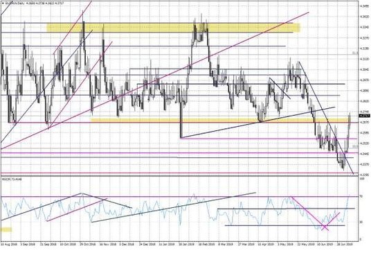 Wątek chiński może ważyć na globalnym ryzyku, podobnie jak obawy związane z zyskami globalnych spółek (negatywny wpływ na rynki akcji) i nawet „gołębie" słowa szefa FED, jakie padną już za kilka godzin, mogą tego nie zrównoważyć. Bo czy Powell powie coś, czego rynki by nie wiedziały? Cięcie stóp o 25 p.b. w końcu lipca wydaje się być przesądzone, ale nie jest jasne, czy będzie to początek dłuższego cyklu (choć teoretycznie powinien).