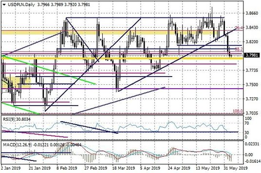 Dla złotego wciąż bardziej liczy się to, co dzieje się na globalnych rynkach. Utrzymujące się oczekiwania na ewentualne poluzowanie polityki przez FED (Powell powiedział wczoraj tylko, że wesprze gospodarkę „odpowiednimi działaniami", jeżeli zajdzie taka potrzeba) osłabiają dolara i podbijają przecenione w maju ryzykowne aktywa, widać też zwyżki na giełdach akcji. Na tym korzysta też złoty, w efekcie w środę rano USDPLN ponownie zjechał poniżej 3,80, a EURPLN zbliżył się do wsparć przy 4,2750.