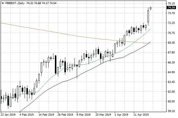 Kluczowym impulsem do wzrostów cen ropy naftowej w poniedziałek był komunikat ze strony administracji Donalda Trumpa, zapowiadający zaostrzenie sankcji na Iran. Stany Zjednoczone zażądały bowiem, aby kraje kupujące irańską ropę naftową całkowicie zaprzestały tych operacji pod groźbą narzucenia na nie sankcji przez USA. Nowe zasady mają wejść w życie już na początku maja, co dla paru krajów oznacza termin wyjątkowo trudny do dotrzymania.