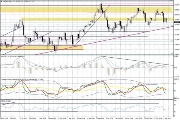 Na razie jednak nastroje na rynkach akcji nie są najlepsze, na czym korzysta USDJPY. We wczorajszym wpisie zwracałem uwagę, że rośnie prawdopodobieństwo wybicia się dołem przez linię trendu wzrostowego rysowaną od dołka z maja b.r. Na razie nie była ona jeszcze testowana (112,25), ale taki scenariusz może zaistnieć w najbliższych tygodniach, jeżeli minorowe nastroje na rynkach akcji zintensyfikują się zwłaszcza w styczniu.