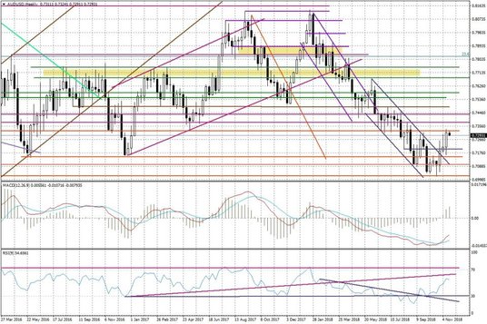 RBA opublikował trzy dni później (9 listopada) kwartalny raport nt. polityki pieniężnej w którym zaprezentował nowe prognozy dla PKB i inflacji. Podtrzymane zostały wcześniejsze założenia mówiące o tym, że dynamika PKB ma nieco wyhamować w przyszłym roku (do 3,25 proc. z 3,5 proc.) a inflacja CPI przyspieszyć do 2,0 proc. z 1,75 proc. Niższy wzrost gospodarczy i silniejsza presja na wzrost cen, to jednak obserwowana powszechnie tendencja. RBA nie widział jednak podstaw do tego, aby zmieniać swój forward guidance w temacie stóp procentowych – publikowane jutro zapiski z przebiegu tego posiedzenia, powinny to potwierdzić.