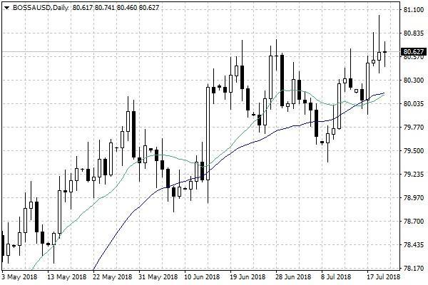Naszym zdaniem: W bieżącym tygodniu amerykański dolar pnie się w górę. Mimo słabego rozpoczęcia tygodnia, indeks BOSSAUSD utrzymał się powyżej poziomu 80 pkt. i przez większość tygodnia pozostawał pod presją popytu. Zwyżkom notowań tej waluty sprzyjało m.in. wystąpienie Jerome Powella w amerykańskim Kongresie, w którym szef Fed potwierdził zamiar dalszego zacieśniania polityki monetarnej przez Fed.