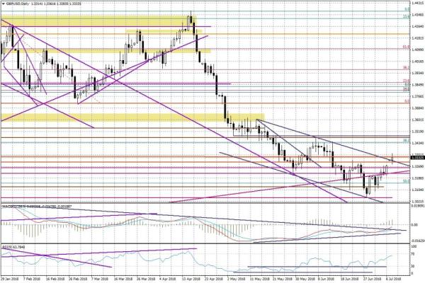 Ciekawie zaczyna wyglądać GBPUSD, który złamał dzisiaj spadkową linię trendu rysowaną od połowy maja. Podobny optymistyczny sygnał pojawił się na wskaźniku MACD. Jeżeli ruch ten nie zostanie w ciągu 1-2 dni zanegowany, to niewykluczone, że mimo pewnych „fundamentalnych wątpliwości" co do jego zasadności, kolejne 1-2 tygodnie przyniosą nam test okolic 1,3470-85.