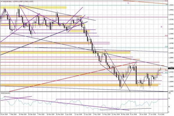 Na zakończenie krótki wpis nt. EURUSD, który dzisiaj dostał wsparcie w postaci danych z Niemiec. Dzienny układ pokazuje, że celem jest rejon 1,18, co możemy zobaczyć dość szybko. Uwagę zwraca oscylator RSI 9, który dotarł do swojej linii oporu. Ewentualne trudności z jej złamaniem będą zapowiadać jakieś schłodzenie nastrojów w najbliższych dniach.
