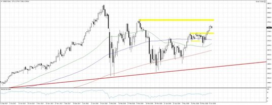 Kontrakt terminowy na S&P 500 spada w kierunku 2760 pkt., a niemiecki Dax poniżej 12700 pkt. Amerykański prezydent zaatakował na twitterze prezydenta Francji oraz premiera Kanady za to, że zapowiedzieli cła odwetowe za wyższe taryfy, co nie jest najlepszym prognostykiem przed rozpoczynającymi się rozmowami. Rynek realnie zaczął wyceniać rosnące tarcie pomiędzy USA a pozostałymi krajami nie tylko w kontekście ceł ale też w kwestii Iranu czy porozumienia klimatycznego z Paryża. Emmanuel Macron ostrzegł, że nie podpisze się pod tradycyjnym komunikatem wieńczącym szczyt, jeśli nie zostanie osiągnięty postęp ws. warunków handlowych, a kanclerz Angela Merkel zapowiedziała już, że poważnie będzie na ten temat rozmawiać z amerykańskim prezydentem. Zbliżający się szczyt będzie niósł za sobą spore implikacje rynkowe: jeśli rozmowy faktycznie nie będą przebiegać w pojednawczym tonie, nastroje będą dalej się korygować również na początku przyszłego tygodnia. Jeśli natomiast dojdzie do zbliżenia stanowisk, istnieje przestrzeń do pozytywnego zaskoczenia.