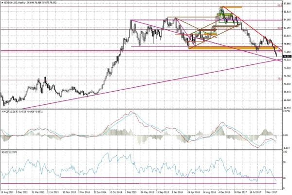 Opinia: Amerykańska waluta nadal traci, a rynki znalazły nowy pretekst do wytłumaczenia tej tendencji – komentarze ze strony oficjeli amerykańskiego rządu sugerujące, że Biały Dom nie będzie bronił polityki „mocnego dolara". Rynki obawiają się, że piątkowe przemówienie Donalda Trumpa w Davos może cechować wyraźny protekcjonizm będący elementem jego programu „America First", a USA będą chciały wykorzystać słabość dolara jako element wojny handlowej. Niewykluczone, że takie rozumowanie, to gruba przesada, ale rynek na razie nie chce się nad tym nadmiernie zastanawiać. Preteksty do dalszego osłabienia dolara stwarza też analiza techniczna. Na długoterminowym układzie koszyka BOSSA USD widać, że do kluczowych wsparć zostało jeszcze nieco miejsca (okolice 75 pkt.), chociaż każdego dnia ta przestrzeń do zniżek się zmniejsza. Trudno jednak ocenić, czy dołek zostanie osiągnięty w tym tygodniu, czy też dopiero w przyszłym.