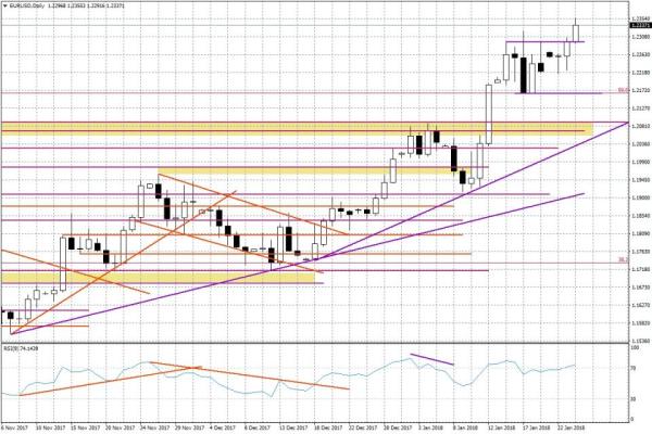 USA: Pojawiły się komentarze oficjeli USA, którzy zdają się „kibicować" słabemu dolarowi. Sekretarz Skarbu Steven Mnuchin stwierdził, że „słabszy dolar jest dobry dla handlu". Z kolei w opinii Sekretarza Handlu Wilbura Rossa „wojny handlowe są obecne już od jakiegoś czasu", ale tym razem to USA wkraczają do walki. Z kolei główny doradca ekonomiczny Białego Domu, Gary Cohn stwierdził, że prezydent Donald Trump podczas zaplanowanego na piątek wystąpienia w Davos będzie zachęcał do inwestowania w USA, oraz nawiąże do polityki „America First" zwłaszcza w kontekście międzynarodowych umów handlowych.