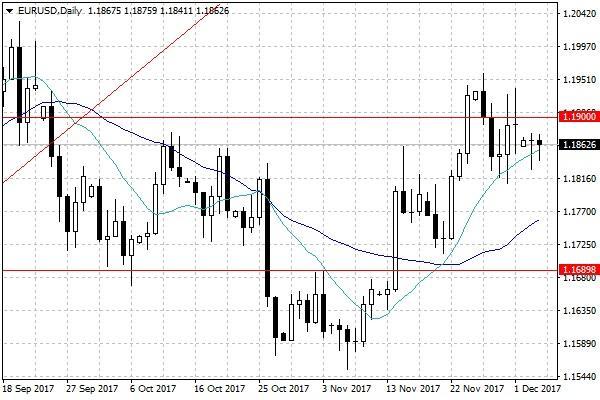 Początek bieżącego tygodnia na wykresie eurodolara jest okresem spokojnej konsolidacji. Kurs EUR/USD znajduje się pod delikatną presją spadkową po nieudanej próbie trwałego wybicia się ponad poziom 1,19. Dzisiejsze liczne odczyty indeksów PMI dla krajów strefy euro nie miały istotnego wpływu na notowania eurodolara. Odczyt wskaźnika PMI dla usług dla całej strefy euro za listopad był zgodny z rynkowymi oczekiwaniami. Nieco rozczarowały Niemcy i Hiszpania, natomiast pozytywnie zaskoczyły Włochy i Francja.