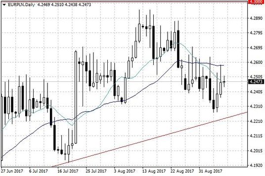 To, co się działo z polskim złotym podczas wczorajszej sesji, wynikało w przeważającej mierze z sytuacji na szerokim, globalnym rynku walutowym. W obliczu braku istotnych danych makro w Polsce, oczy inwestorów zwróciły się w stronę kluczowego wydarzenia wczorajszego dnia, czyli komunikatów po posiedzeniu Europejskiego Banku Centralnego. Jego prezes, Mario Draghi, wyraził zaniepokojenie siłą euro na globalnym rynku, jednak jednocześnie ECB znacząco podniósł prognozę PKB w strefie euro w 2017 r. Inwestorzy na rynkach walutowych zignorowali część o silnym euro, reagując silniej na optymistyczne prognozy wzrostu gospodarczego eurolandu. W rezultacie, wyraźnie umocniło się euro, co było widoczne również na parze z polskim złotym.