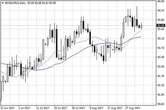 Notowania indeksu BOSSAPLN poruszają się delikatnie w górę, oscylując w okolicach poziomu 93,50-93,60 pkt. Zwyżka notowań rodzimej waluty jest jednak niewielka, a dominująca w poprzednim tygodniu presja podażowa jest widoczna na wykresie BOSSAPLN także dzisiaj rano.