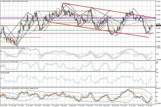 Na NZD/USD dochodzi dodatkowo kwestia zachowania się dolara w kontekście ostatniego zamieszania wokół jutrzejszego głosowania nad ustawą o ubezpieczeniach zdrowotnych w Kongresie. W rannym raporcie wskazywaliśmy, że może być ono przesunięte o kilka dni, co mogłoby dać oddech rynkom... i doprowadzić do kontynuacji obserwowanej ostatnio słabości USD. Na wykresie NZD/USD możliwy jest scenariusz w którym mamy test mocnego rejonu oporu (m.in. górne ograniczenie kilkumiesięcznego kanału spadkowego przy 0,7190).