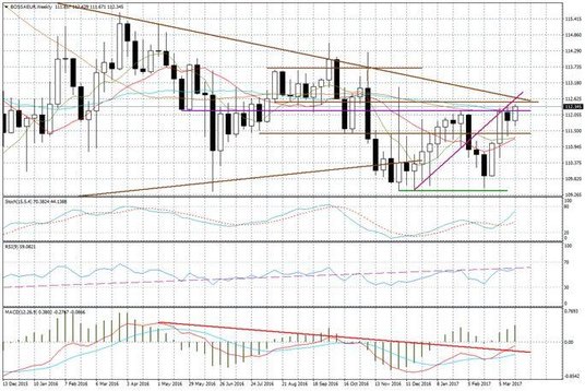 Dzisiaj uwagę zwraca drożejące euro. Wczorajsza debata telewizyjna wypadła korzystnie dla Emmanuela Macrona, co teoretycznie zmniejszyło ryzyko związane ze zbliżającymi się wyborami prezydenckimi we Francji. Warto będzie jednak zaczekać, aby zobaczyć na ile wczorajsze telewizyjne show przełożyło się na realne sondaże. Inna sprawa to casus Clinton-Trump, gdzie też media faworyzowały kandydatkę Demokratów – ostatecznie okazało się, że nieskutecznie. Tym samym nie wydaje się, aby rynki finansowe zupełnie ignorowały francuskie ryzyko. Na pewno nerwowość pojawi się przed druga turą 7 maja, niezależnie od tego jakie byłyby wskazania płynące z sondaży. Technicznie koszyk BOSSA EUR może próbować przetestować mocny rejon oporu 112,50-112,60 pkt. bazujący m.in. na długoterminowej linii trendu spadkowego. Szanse na jego złamanie już teraz wydają się być jednak ograniczone.