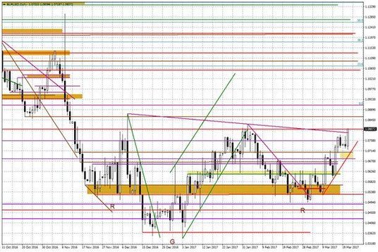 Naszym zdaniem: Mimo, że członek FED z Chicago, Charles Evans ostatecznie zdjął wczoraj z siebie opinię „gołębia" przyznając, że byłby w stanie poprzeć scenariusz łącznie trzech podwyżek stóp procentowych w tym roku, to model CME FEDWatch obrazujący szanse na taki ruch w najbliższych miesiącach, nie zmienił się znacząco. Podwyżka w czerwcu nadal wyceniana jest poniżej 60 proc. Dolar nie dostał mocnego pretekstu do odbicia i nadal traci. Na to nakładają się też informacje o dochodzeniu FBI ws. kontraktów ludzi Donalda Trumpa z Rosjanami podczas kampanii wyborczej – rynek może (choć nie musi) obawiać się, że to utrudni współpracę prezydenta z Kongresem nad kluczowymi aspektami polityki gospodarczej. Gorzej, te wciąż nie są znane, a z wcześniejszych zapowiedzi polityków wynikało, że ci nie zajmą się podatkami, zanim nie zostanie uchwalona nowa ustawa zastępująca system ubezpieczeń Obamacare. Dzisiaj w kalendarzu dla USA mamy dane nt. rachunku C/A za IV kwartał o godz. 13:30, a także wypowiedzi kolejnych członków FED (George o godz. 17:00, oraz Mester o godz. 23:00). Dzisiejsze przedpołudniowe wystąpienie Dudley'a o godz. 11:00 nie dotyczyło aspektów polityki monetarnej. Na wykresie koszyka BOSSA USD widać, że zeszliśmy już do strefy wsparcia 83,50-83,70 pkt. Rejon 83,50 pkt. może być silnie broniony, co teoretycznie dawałoby pretekst do odreagowania dolara w najbliższych godzinach.