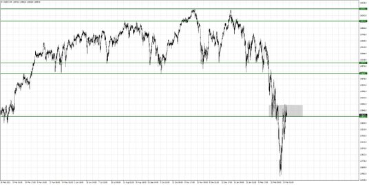 Cena baryłki ropy WTI spadła poniżej poziomu 100 dolarów. Trwa zatem faza odreagowania po wcześniejszym dynamicznym wzroście w pobliże 130 dolarów za baryłkę. Cena zbliża się do strefy wokół 90 dolarów, którą można uznać za strefę wsparcia ze względu na wahania, jakie miały miejsce w lutym. Złoto również znajduje się w fazie korekty. Cena uncji spadła do 1930 dolarów. Ostatnia fala wzrostu rozpoczęła się nieco poniżej poziomu 1880 dolarów, a więc nadal to cofnięcie odbieramy jako korektę. Niemniej potencjalna presja ze strony Rosji na tym rynku może sprzyjać spadkom. Na razie wątek awersji do ryzyka nieco stracił na sile.