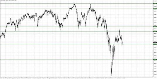 Wczorajsze popołudnie i wieczór upłynęły na poprawie wycen na rynkach akcji. W trakcie regularnej sesji indeksy amerykańskie się podnosiły. Późniejsze notowania były stabilne. W efekcie dzisiejszego poranka dzień zaczyna się nad wsparciami. Wczoraj doszło do kolejnej próby przełamania poziomu 34000 pkt. na indeks Dow Jones. Bez powodzenia. Obecnie ceny kontraktów na ten indeks znajdują się ponad 400 pkt. wyżej. Tymczasem ceny kontraktów na niemieckiego DAX są wyraźnie ponad poziomem 14120 pkt. Wczoraj także i tu mieliśmy próbę zejścia niżej, ale popyt ponownie uaktywnił się w pobliżu 14050 pkt. To jeszcze nie zamyka sprawy tego poziomu, gdyż odbicie nie jest duże. Na DAXie nadal ważny wydaje się poziom 14350 pkt. i dopiero jego pokonanie uznać będzie można za porażkę niedźwiedzi na wsparciu.