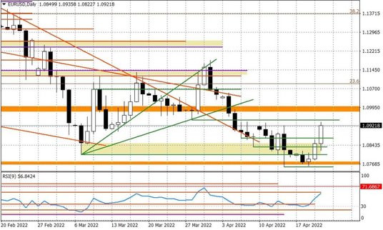 Dzisiaj w kalendarzu uwagę zwrócą dane o inflacji HICP w strefie euro za marzec (godz. 11:00), oraz informacje z USA (dane Philly FED, cotygodniowe bezrobocie, wskaźniki wyprzedzające). Późnym popołudniem uwagę zwrócą też wystąpienia szefów FED, ECB i BOE w związku z corocznym spotkaniem w Międzynarodowym Funduszu Walutowym. O ile wątek posunięć ze strony FED został już zdyskontowany (poza Bullardem nie widać głosów poparcia za pomysłem podwyżki stóp o 75 p.b., a głosy gołębi (wczoraj Daly, wcześniej Evans), że stopy procentowe mogą do końca roku dojść do poziomu neutralnego (około 2,40 proc.) nie są już zaskoczeniem), o tyle taka przestrzeń jest w przypadku ECB, czy też Banku Anglii.