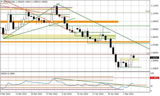 W przestrzeni G-10 najgorzej radzi sobie dzisiaj wspomniany już funt. Rynek zamiast na posiedzeniu BOE skupia sie na lokalnych wyborach w Irlandii Północnej, które mogą wygrać zwolennicy odłączenia się Irlandii Północnej od Zjednoczonego Królestwa. EURUSD traci niewiele cofając się po nieudanej próbie powrotu ponad ważny poziom 1,0635. W przypadku USDJPY będącego dobrym miernikiem nastrojów wokół dolara, mieliśmy tylko krótkotrwałe zejście poniżej 129,00 i notowania próbują powracać do 130,00.