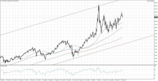 Dziś sentyment się poprawia, co można łączyć z cofnięciem na rynku ropy. Baryłka WTI spada bowiem w kierunku 112 USD po tym jak Arabia Saudyjska dała do zrozumienia, że będzie starała się uzupełnić podaż surowca, jeśli jego dostępność znacząco się obniży po nałożeniu embarga na Rosję. Największy przedstawiciel kartelu OPEC jest gotowy do natychmiastowego wzrostu produkcji, co może być zakomunikowane podczas zaplanowanego na dziś comiesięcznego spotkania OPEC+. Choć sytuacja na globalnym rynku ropy pozostaje napięta to w opinii Arabii Saudyjskiej nie występują jeszcze na rynku prawdziwe niedobory. Utrzymywana od blisko roku polityka stopniowego wzrostu wydobycia ma być kontynuowana. Kraj uważa, że kryzys energetyczny może się jeszcze pogłębić w tym roku, przez co musi być utrzymywana duża rezerwa mocy. Biały Dom wielokrotnie już wzywał sojusznika do opanowania wzrostów cen ropy.
