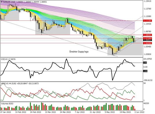 Pamiętajmy, że inwestorzy wyceniają zaostrzenie oczekiwań Fed przed kluczowymi danymi o zatrudnieniu w USA. Dane te powinny być szczególnie monitorowane z uwagi na przebieg notowań EURUSD, niemniej już dzisiaj poznamy prognostyk w postaci ADP za maj 2022 r., który ustawi nastroje przed piątkowymi publikacjami NFP. Należy również śledzić najbliższe odczyty sprzedaży detalicznej w Eurolandzie oraz ISM usług w USA.