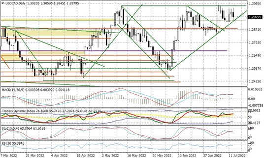 Na wykresie USDCAD pierwszą reakcją na informacje z Banku Kanady było wyraźniejsze umocnienie CAD'a, które jednak później zostało skorygowane. Technicznie doszło do przetestowania linii trendu wzrostowego, która jednak nie została złamana.