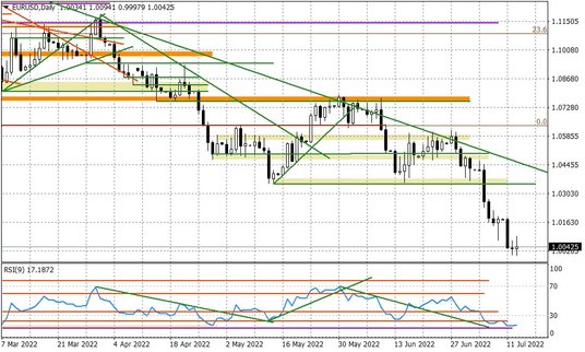 Wprawdzie odczyt nie przekroczył bariery 10 proc. r/r jak to miało miejsce w fake'owym raporcie, jaki pojawił się wczoraj wieczorem, to dane mocno martwią FED i rynki. W czerwcu ceny rosły w tempie 1,3 proc. m/m i 9,1 proc. r/r, a w ujęciu bazowym o 0,7 proc. m/m i 5,9 proc. r/r. To zaczyna rodzić obawy, czy uda się uniknąć dwucyfrowych wartości CPI i na ile działania FED mogą być skuteczne - tym samym wyraźnie wzrosła presja na dalsze agresywne podwyżki stóp procentowych. Rynek w pełni wycenia ruch o 150 punktów bazowych na najbliższych dwóch posiedzeniach (w końcu lipca i w ostatniej dekadzie września) - przesunięcie oczekiwań jest widoczne bardziej, jeżeli chodzi o wrzesień, gdzie do tej pory więcej było wskazań na wyhamowanie tempa podwyżek do 50 punktów bazowych. Niewykluczone, że FED zdecyduje się nawet na kombinację 100 punktów teraz i 50 punktów we wrześniu, gdyż teraz dane z gospodarki są dobre, a trudno ocenić, jak sytuacja będzie wyglądać na jesieni. Według modelu CME FED Watch szanse na ruch o 100 p.b. w lipcu wzrosły do 48,8 proc. z zaledwie 9,5 proc. dzisiaj rano.